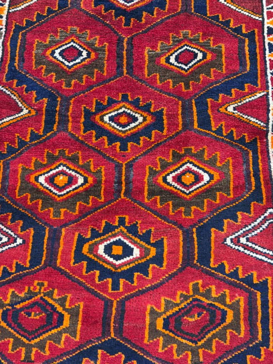 فرش زرع و نیم لری- نقشه افشان - تمام پشم- ریشه های پشمی-