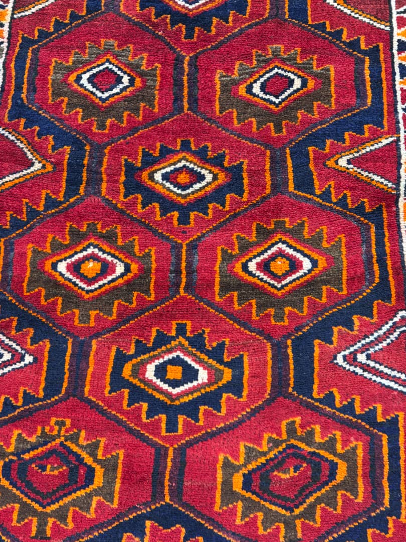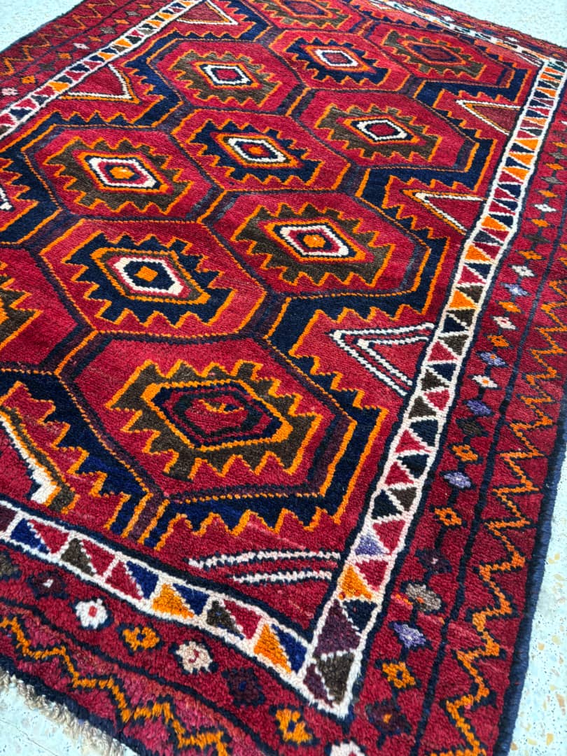 فرش زرع و نیم لری- نقشه افشان - تمام پشم- ریشه های پشمی-