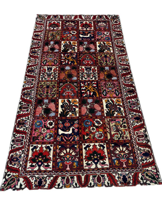 فرش پرده ای بختیار - نقشه خشتی مرغوب- پشم دستریس و رنگ گیاهی🍀- فرشی کاملا سالم و صاف که به صورت حرفه ای شسته شده است 👌🏼
