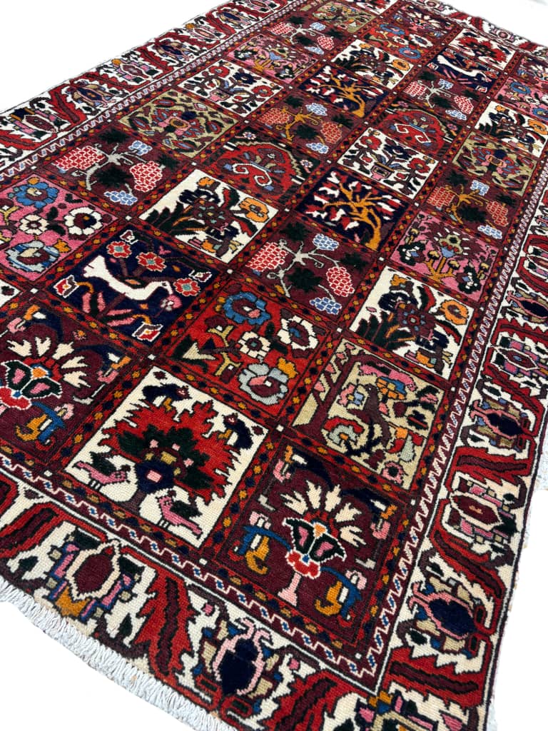فرش پرده ای بختیار - نقشه خشتی مرغوب- پشم دستریس و رنگ گیاهی🍀- فرشی کاملا سالم و صاف که به صورت حرفه ای شسته شده است 👌🏼