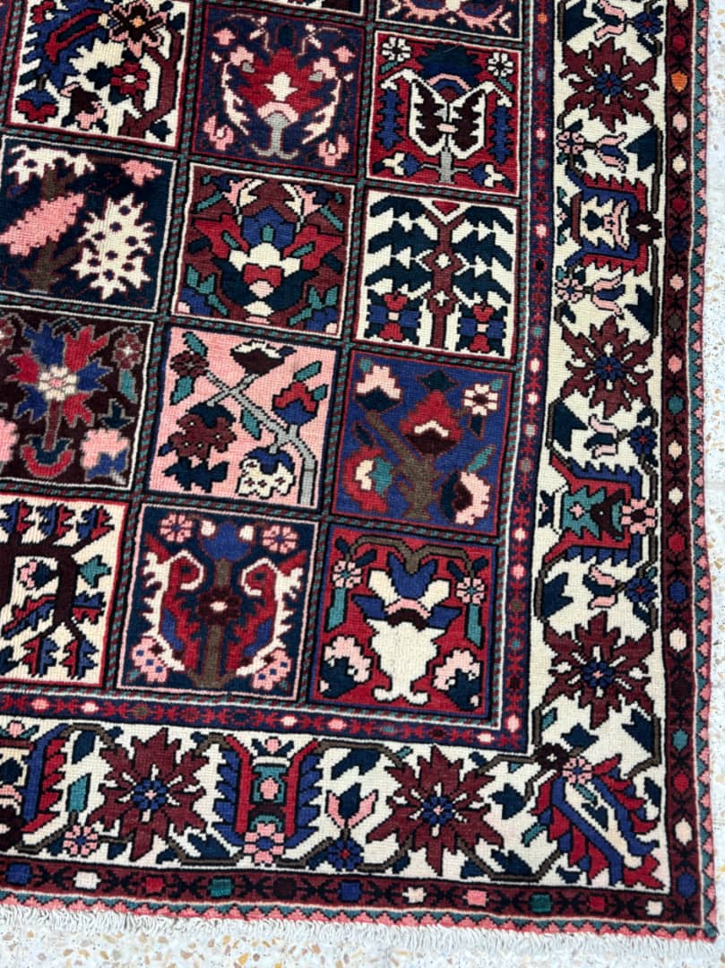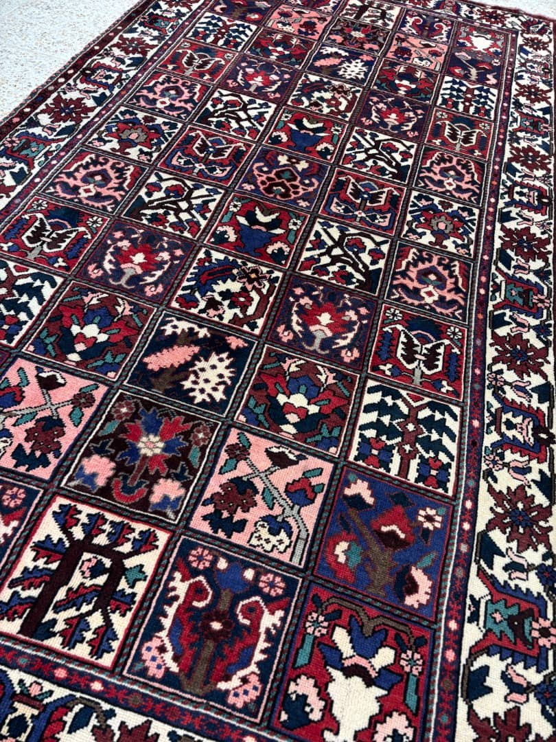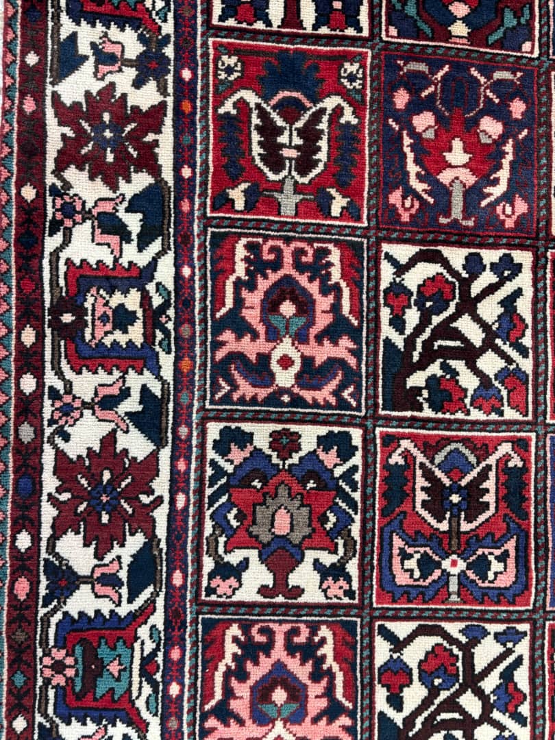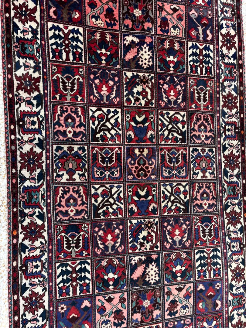 فرش پرده ای بختیار - نقشه خشتی - پشم دستریس- رنگ امیزی گیاهی🍀 به صورت حرفه ای شسته شده است 👌🏼✨️ برای ثبت سفارش با ما ارتباط بگیرید🌸